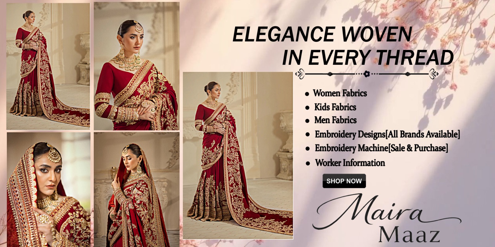 Maira Maaz ek premium fabric aur embroidery brand hai jo quality, elegance aur craftsmanship par yaqeen rakhta hai. Hum apne customers ko women, men aur kids ke liye behtareen fabrics aur latest embroidery designs provide karte hain.